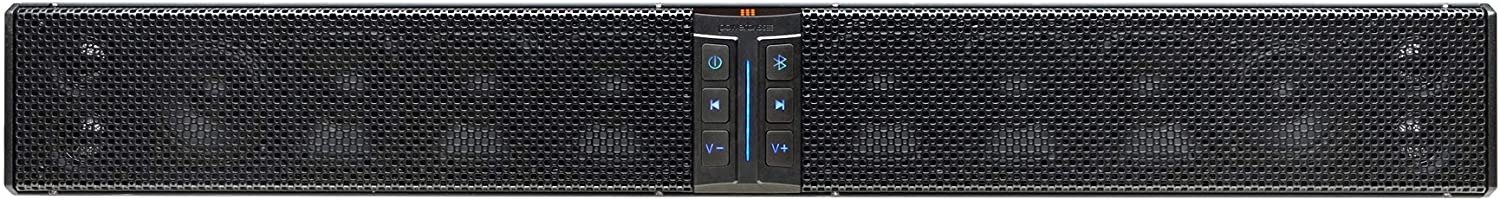 12 Speaker 500 watt Amplified Bluetooth Powersports Soundbar Heavy Duty Extruded Aluminum Water Tight Housing IPX6 Rated - Weatherproof and ready for everything that comes it's way on the trails. LED back-lit Control Panel - LED Visual Notifications Built In DSP Processor w/Distortion Limiter, Bluetooth and Wired Inputs, 2 Volt Line Output
